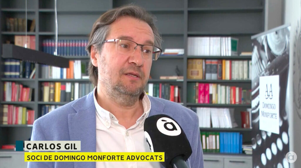 El socio Carles Gil Gimeno de DOMINGO MONFORTE Abogados Asociados,  y experto en Derecho Penal, ha intevenido hoy en el Informatiu Migdia de À Punt.