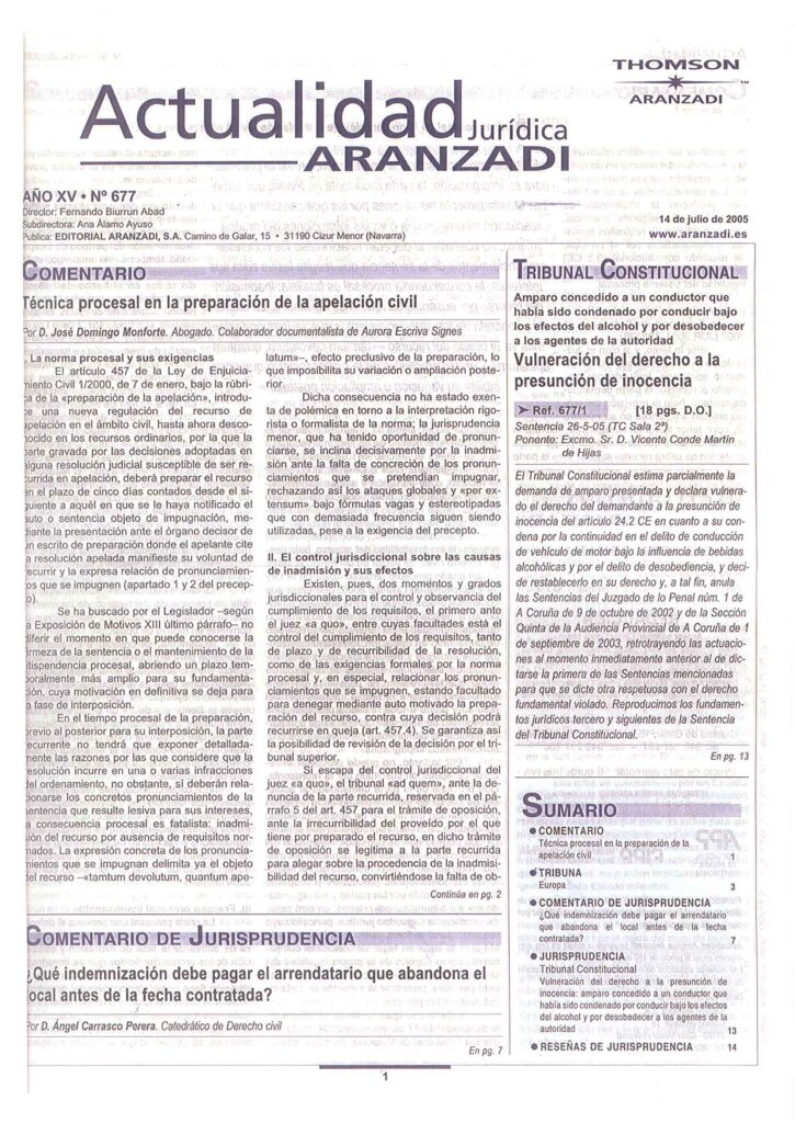 Aranzadi (Julio 2005). Aurora Escrivá Signes y Jose Domingo Monforte , director de Domingo Monforte Abogados Asociados. Abogados especializados en Derecho Civil y Patrimonial. Despacho en Valencia.